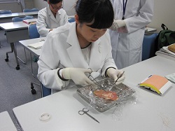 超音波シミュレータで胎児の推定体重を算出したり、会陰縫合シミュレータや鶏肉を用いて実際に縫合の手技を学ぶことができて、進路の選択肢の幅が広がったと思います。(Iさん)